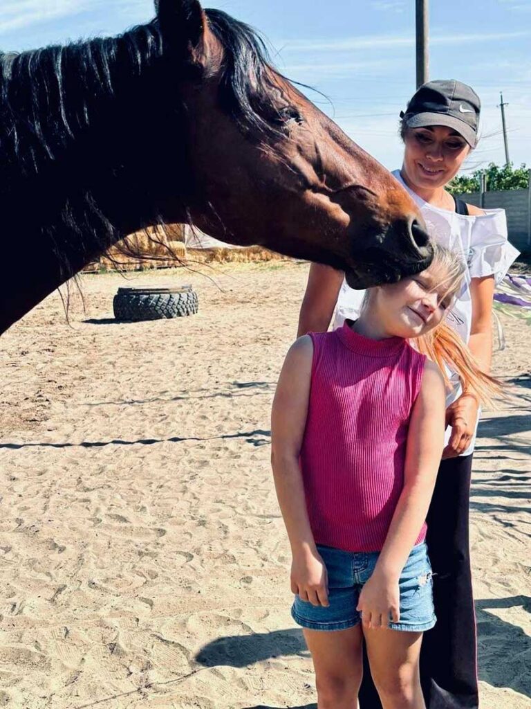 Equine therapy is provided by Anna Nikonenko, a member of the Union of Equine Therapy and Adapted Equestrian Sports Specialists.